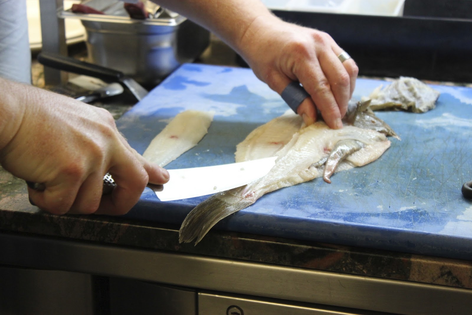If you are wondering how to spot a fresh fish, Eliza Acton tells it best: 'The eyes should always be bright, the gills of a fine clear red, the body stiff, the flesh firm, yet elastic to the touch, and the smell not disagreeable'. Keep clear of the creature should these signs be reversed. We took our pick and awaited our turn for the flexible filleting knife, one chap pacing back and forth, bass in hand.